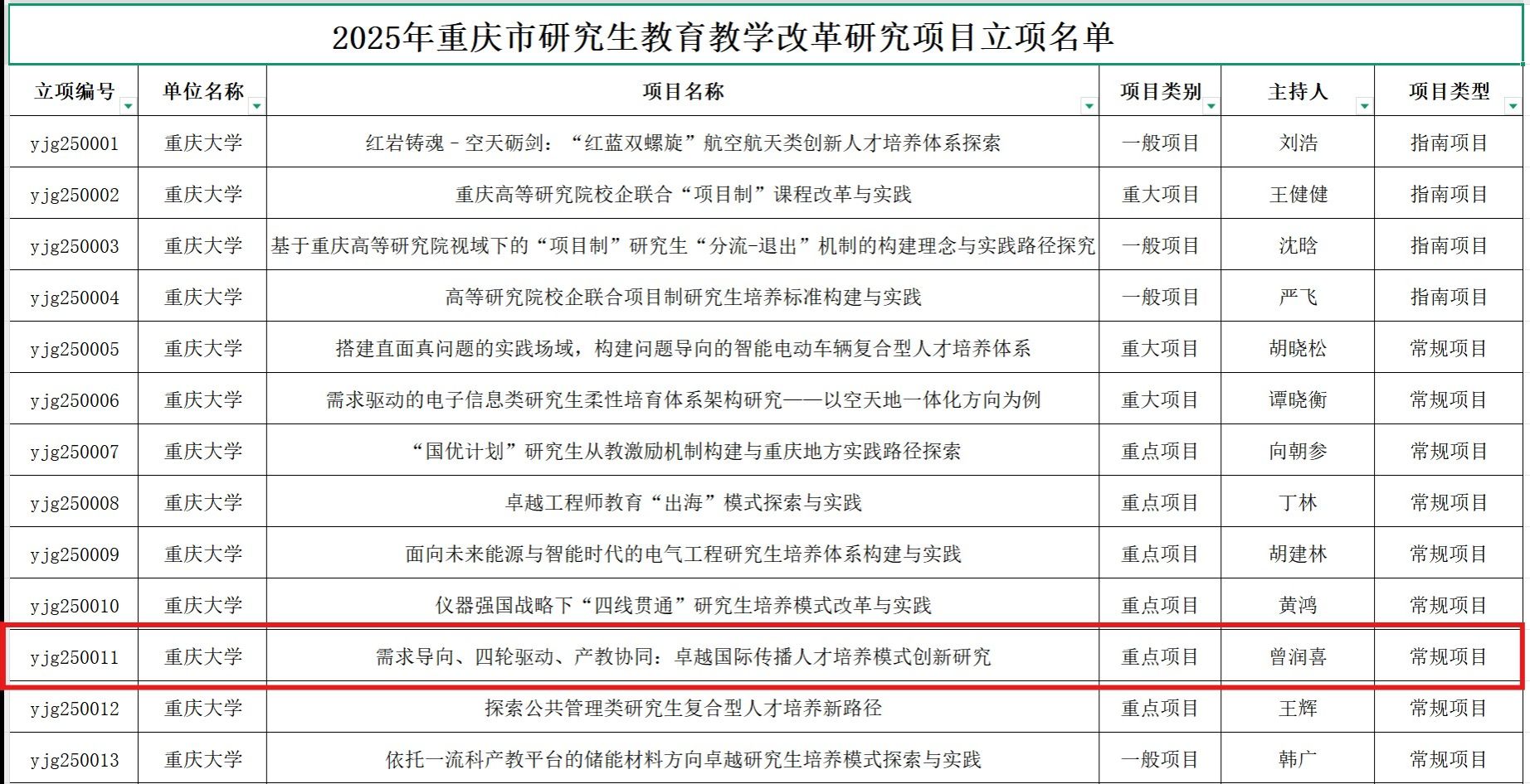研究生教育教学改革研究项目的立项名单。色情网址