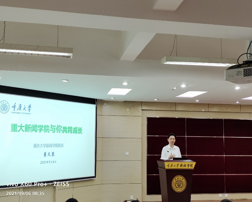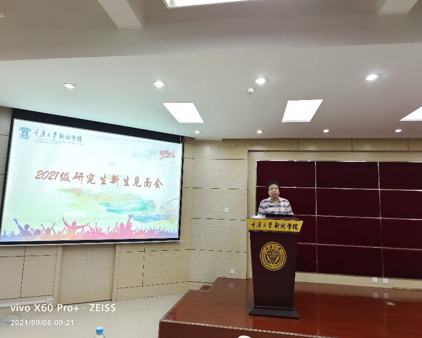 的概况及近年的新发展,包括新闻传播学科特色与相对优势、师资队伍、科学研究、人才培养等方面,并寄语同学们践行学校的办学宗旨及学院的院训。他期待研究生新生:要有坚定的学术志向与高远的学术理想;要有扎实的学术训练与专业的学术能力;要有开阔的学术视野与宏大的学术格局;要有沉潜的学术功夫与从容的学术人生。