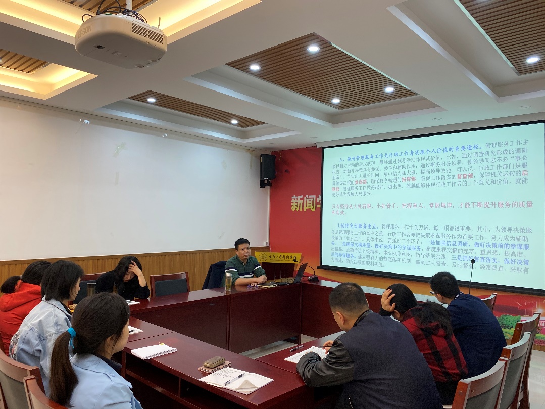 10月16日,学院管理与服务能力水平提升培训会在301室召开,党委书记凌晓明主持会议。