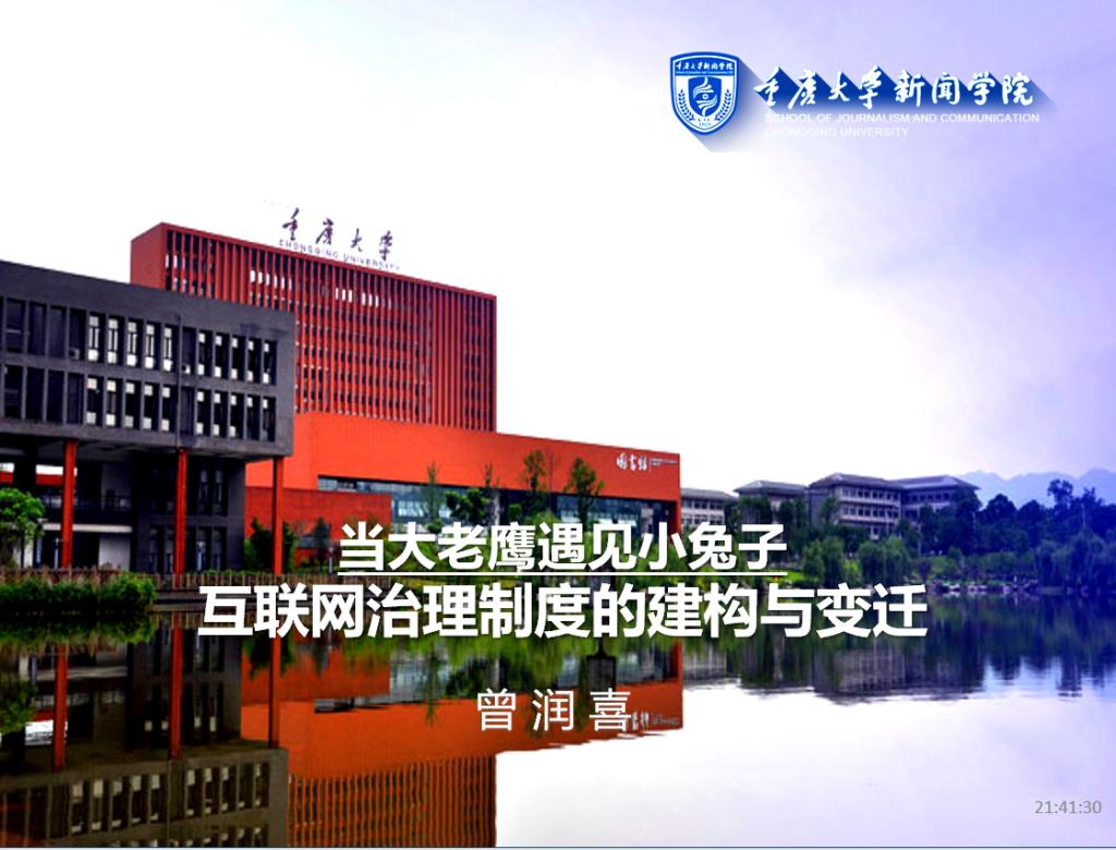 7月16日晚,网络与新媒体讲习班迎来最后一讲,曾润喜教授为全体学员带来题为“当大老鹰遇上小兔子——互联网治理制度的建构与变迁”的线上直播讲座。曾润喜教授是色情网址