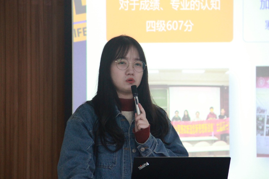 吴小玉以“志之所趋,无远弗界”为题作了有关学生工作的发言。她主要就“继续做学生工作有没有意义?”、“怎样平衡学习和学生工作?”两个问题给出说明和建议。在她看来,学生工作是否有意义在于你是否认同该组织、团体的核心理念,是否真正热爱这个工作。吴小玉以在五彩石协会的宣传工作为例,阐释了做好学生工作是追求双赢的过程,她在助力五彩石协会发展壮大的同时提高了自身的阅历与专业实践能力,并且扩大了交际圈,收获珍贵友谊,实现了学生工作的意义。对于如何平衡学习和学生工作,她认为现阶段大家应该以学习为首要任务,尤其要重视课堂的作用,像海绵一样吸收知识,国际传播、媒介经营管理、数字媒体产业等课程的学习具有专业性和针对性,能帮助我们明晰新闻传播学的学术流派、规范和学习方法,锻炼提高学术能力。