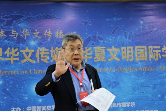 新加坡南洋理工大学黄金辉传播与信息学院郝晓鸣教授点评了第二分论坛的研讨情况。他说,“世界华文传媒与华夏文明”国际学术研讨会已发展二十余年,不仅见证了中国大陆新闻与传播研究的发展历程,也缩小了大陆与台湾社科研究水平的差距。“多样化”是与会者的主要特征:研究对象多样化、研究题材多样化、研究方法多样化以及研究效果多样化。郝晓鸣指出,许多研究问题和方法都是非常明确和清晰的,但在人性关怀和理论追求等方面还有提升的空间。