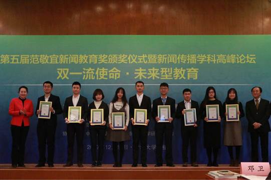 范敬宜先生是我国声誉卓著的新闻工作者和卓有建树的新闻教育家。为继承和发扬范敬宜先生的新闻教育思想,2013年,由人民日报社、经济日报社、国家外文局、辽宁日报传媒集团、大众报业集团、海南日报报业集团和清华大学新闻与传播学院共同发起倡议设立了“范敬宜新闻教育基金”,奖励优秀的新闻学子、新闻教师以及热心新闻教育的业界人士,每年评选一次。第五届范敬宜新闻学子奖的评选,采用单位推荐与个人申请相结合的方式产生候选人,邀请各传媒单位、新闻院校的资深专家及学者组成评选委员会进行评选工作,全国共有10位学子获此殊荣。