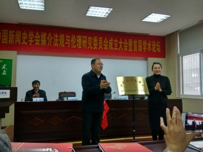 11月19日上午,中国新闻史学会媒介法规与伦理研究委员会举行揭牌仪,并向当选的会长、副会长、秘书长、学术顾问和常务理事颁发了聘任证书。
