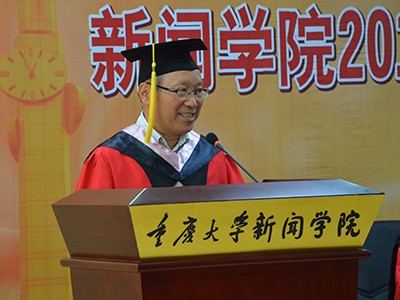 毕业生代表,2016届本科新闻专业二班万凌云在典礼上发言。万凌云同学首先表达了对学院老师和父母的感谢,细数了在重大四年的所思所感。万凌云希望大家以重大人为骄傲,走出校门后依然保持学习的热情和理想的坚定。