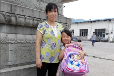 穿一身缀着小碎花的衣裤,眨着一双明亮忽闪的大眼睛,因为初见众人而略带不安,塑料凉鞋里的小脚丫有些局促地扭动着。这个看上去十分乖巧的女娃娃今年九岁,叫做谭红艳,是石柱县留守儿童精英学校二年级的一名小学生。小红艳是个活泼的性子,爱笑,却话不多,一笑起来眉眼弯弯,露出嘴巴里两颗洁白的虎牙,显得十分可爱。