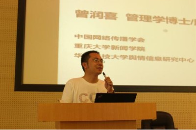 此次讲座围绕关于网络舆情研究的三个反思展开。曾润喜研究员提出的第一个反思为:如何看待今天的舆情研究。他首先梳理了移动互联的自媒体时 代的发展历程,在此基础上以天气预测和地震预测为喻来说明舆情工作者的状态和理想。随后,曾润喜研究员分别从论文的发文时间、发文趋势、发文杂志和机构、 发文作者、学术流派等多个方面讲述了舆情研究的历史与现状。