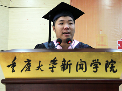 最后,由学生代表张万夫和教师代表郭小安发言。他们在讲话中回忆了同学们在校园时光的点滴,并对这四年来相互陪伴,相互支持的同学和老师表示了感谢。张万夫在讲话中对于同学们的未来提出了展望,并希望同窗之谊可以长久。而郭小安从“大学算什么”“大学学什么”“是否还应该捍卫新闻理想”三个角度出发,给同学们提出了建议。