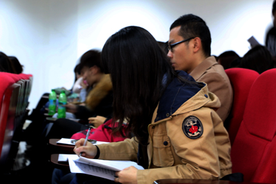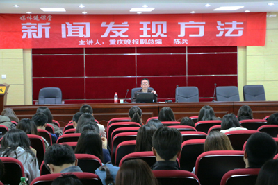 作为一位资深编辑,陈兵先生道出了大学生初进传媒行业最大的困难是“面对一盘好菜不知道从哪下嘴”和“最初对工作的踌躇满志但很快就垂头丧气”,他勉励在座的同学们在校期间一定要好好学习,多思考,多观察。陈兵先生说:“我讲的都是我的个人经验和总结,如果和你们老师讲的有所不同,以老师为准,但是到岗位上去的话可能就要以我为主咯。”陈兵先生幽默的话语再次引来掌声。