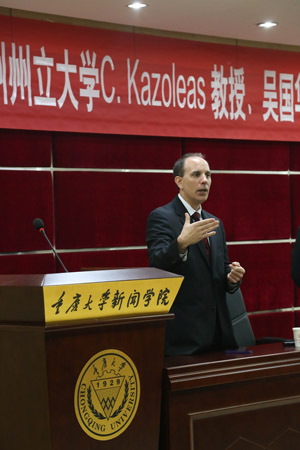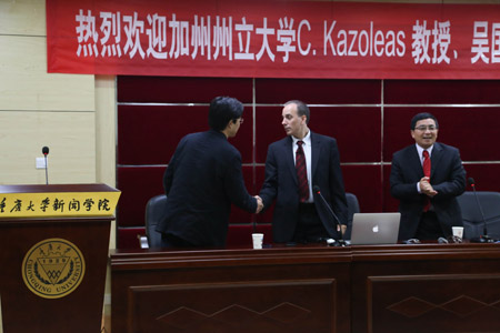 (董天策院长代表全体师生向C.Kazoleas教授表示热烈的欢迎)