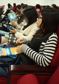 报告厅如期举行。来自香港浸会大学的Elaine老师讲解了最新的硕士、博士招生政策,并现场解答了同学们的问题。