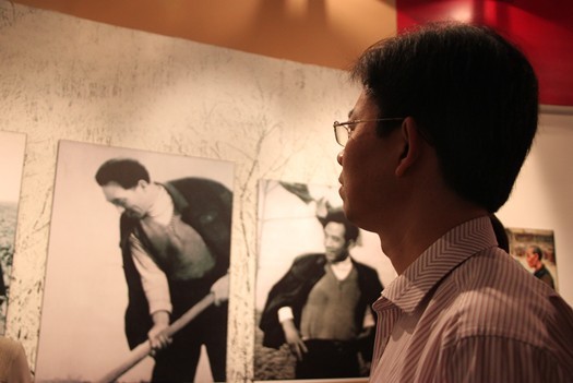 (董天策教授在焦裕禄纪念馆观看焦裕禄生前照片)