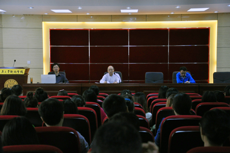 荣誉院长马胜荣、院长董天策出席,全体研究生参加会议,本次会议由魏世平副书记主持。