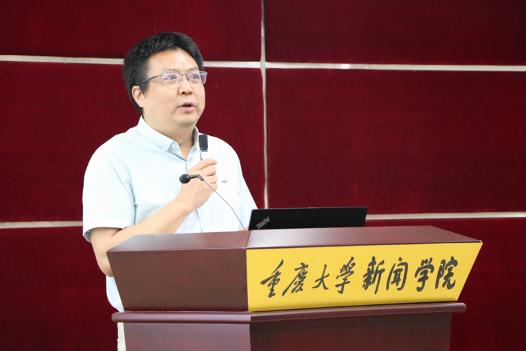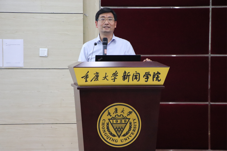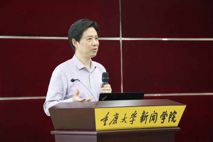 学院楼多功能厅举行。学院党委书记凌晓明、院长董天策、党委副书记郭秀荣、副院长郭小安、副院长龙伟以及新闻、广电专业负责人张小强教授、刘海明教授出席会议,宣讲会由郭小安副院长主持。