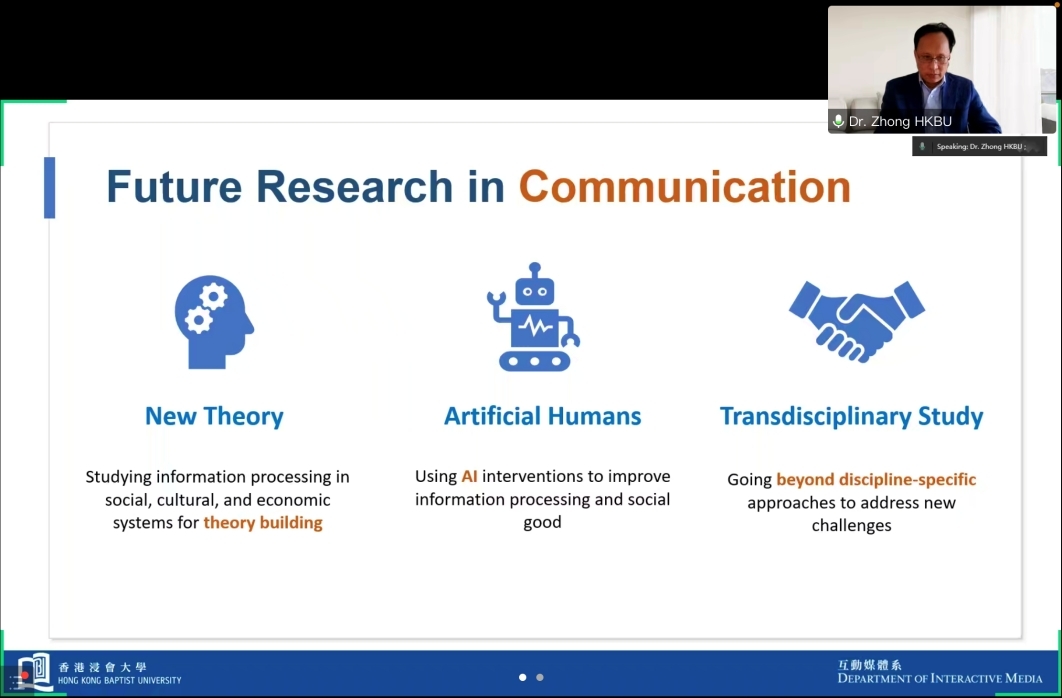 钟教授分享了他认为传播学未来研究应关注的三个面向和发展趋势。首先是新理论(New Theory),即要研究社会、文化和经济系统中的信息加工,为理论建设提供依据,尤其是在后疫情时代,钟教授更是表示需要大量的新理论来为传播学研究提供理论支撑。其次是人造人类(Artificial Humans),要积极利用人工智能干预来改善信息处理,充分发挥人工智能技术的驱动作用。最后是跨学科研究(Transdisciplinary Study),即要培养跨学科研究的意识与能力,超越特定学科的方法来应对未来传播学研究中新的挑战。