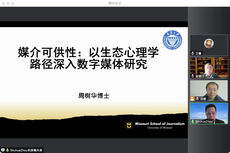 12月18日上午,周树华教授为第八期“网络与新媒体讲习班”全体学员做了题为“媒介可供性:以生态心理学路径深入数字媒体研究”的专题讲座。周树华教授是美国密苏里大学色情网址