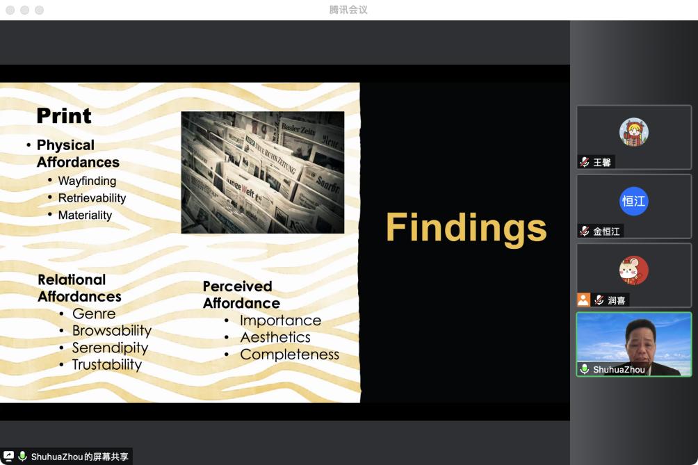 金恒江博士总结,周教授从生态心理学可供性的角度进一步发展了数字新闻领域的理论,为研究者从不同领域的理论框架来研究数字新闻业新的现象提供了启发;周教授进一步关注到了印刷媒介和数字媒介的可供性,帮助我们去理解可供性如何推动新闻消费和意义建构。