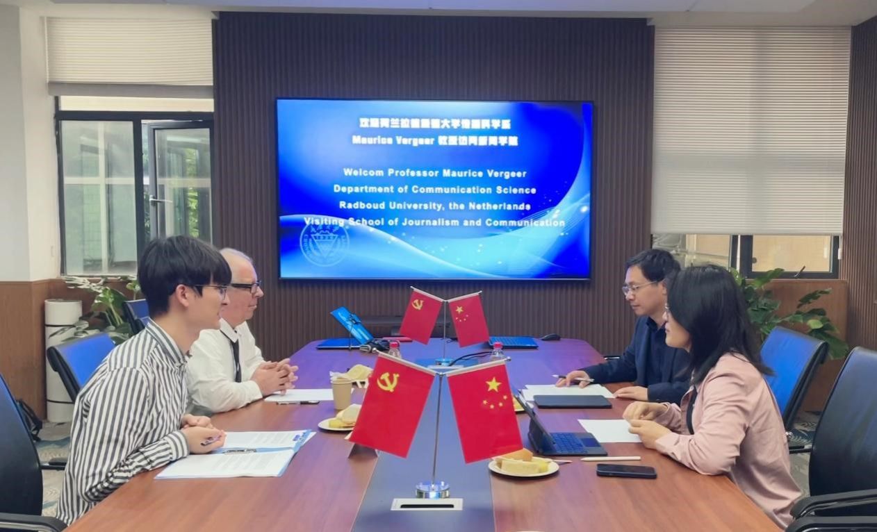 曾润喜教授代表学院对Marurice Vergeer的来访表示热烈欢迎,介绍了学院的历史沿革、专业设置、研究生教育项目以及在国际交流合作方面取得的成绩。当前,学院正沿着“1+3+2”的学科发展战略稳步向前发展,积极推进智能传播、视听传播、国际传播的科学研究和平台建设工作,产出了一系列高质量的研究成果;学院高度重视国际交流与合作,已经与美国、澳大利亚、中国香港等国家和地区的多所知名高校建立了稳固的合作关系。曾润喜教授希望此次会谈能为学院与荷兰拉德堡德大学相关院系的合作开拓可能性,进一步促进学院的国际化发展。