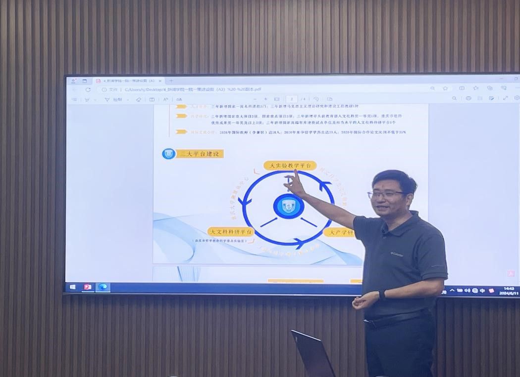 未来将紧紧围绕“1+3+2”的战略框架,稳步推进智能传播、国际传播、视听传播三大支撑方向的发展。在谈及图书馆新闻分馆的发展现状时,郭小安院长坦言,分馆目前面临着图书资源更新不及时、图书资料入库速度慢及专业数据库品种较为单一等问题,希望能够得到图书馆的扶持。在谈及双方产学研合作思路时,他希望在大实验教学平台、大文科科研平台、大产学研转化基地三大平台建设的总目标指引下,能整合各方力量,努力拓展信息传播与数字出版学科研究方向,共同打造一支高水平的学科交叉性研究队伍。