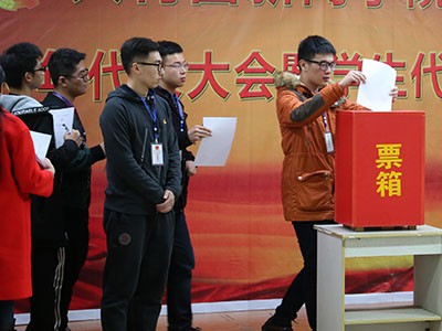 代表候选人名单,大会审议并通过了选举方法、大会总监票人和监票人名单、总计票人和计票人名单。随后,大会投票选举阶段总监票人主持,与会代表在仔细阅读候选人简介后认真填写了相应选票,并依次将选票投入选票箱。投票完毕后,总计票人带领计票人级工作人员到后场计票,团员代表、学生代表休会半小时等待投票结果。