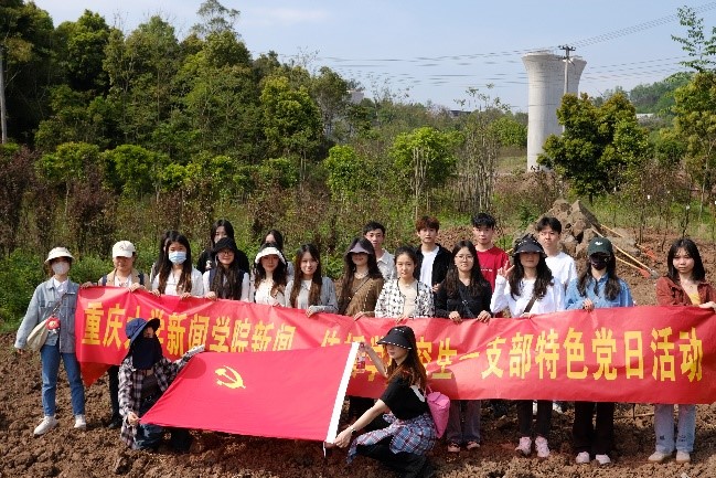 新闻、传播学研究生一支部、四支部、2023级团支部于重庆市沙坪坝区胡南坝植树基地开展“深悟绿色发展,建设美丽重庆”特色党日活动。